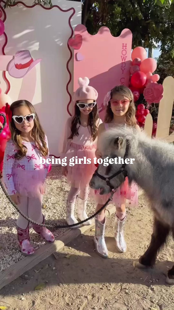 Iridescent leather cowgirl boots with matching iridescent sparkle panels that shimmer in every light. Designed with a playful scalloped top and classic cowgirl stitching for that perfect twirl-worthy touch. The soft lining and cushioned insole make them comfortable for all-day adventures, while the flexible rubber outsole ensures easy movement and dancing fun.
